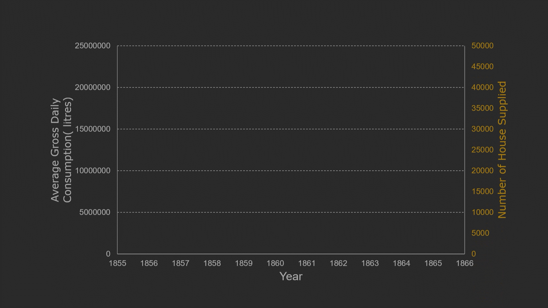 The sewerage system has also been progressing. Since the pipes were installed, an increase in daily water consumption can be seen, from an average of 7,255,000 litres in 30,996 houses in 1856 to 20,034,000 litres in 46,305 houses in 1865. Let’s do the math. The average daily water consumption of these years is 12,936,333 litres, and the average Leeds population in 1850s and 60s was approximately 277,388. So we can draw a conclusion that the daily water consumption per head is 47 litres per capita during that time. While at present, a person in the UK uses approximately 145 litres per day. That’s a huge progress!